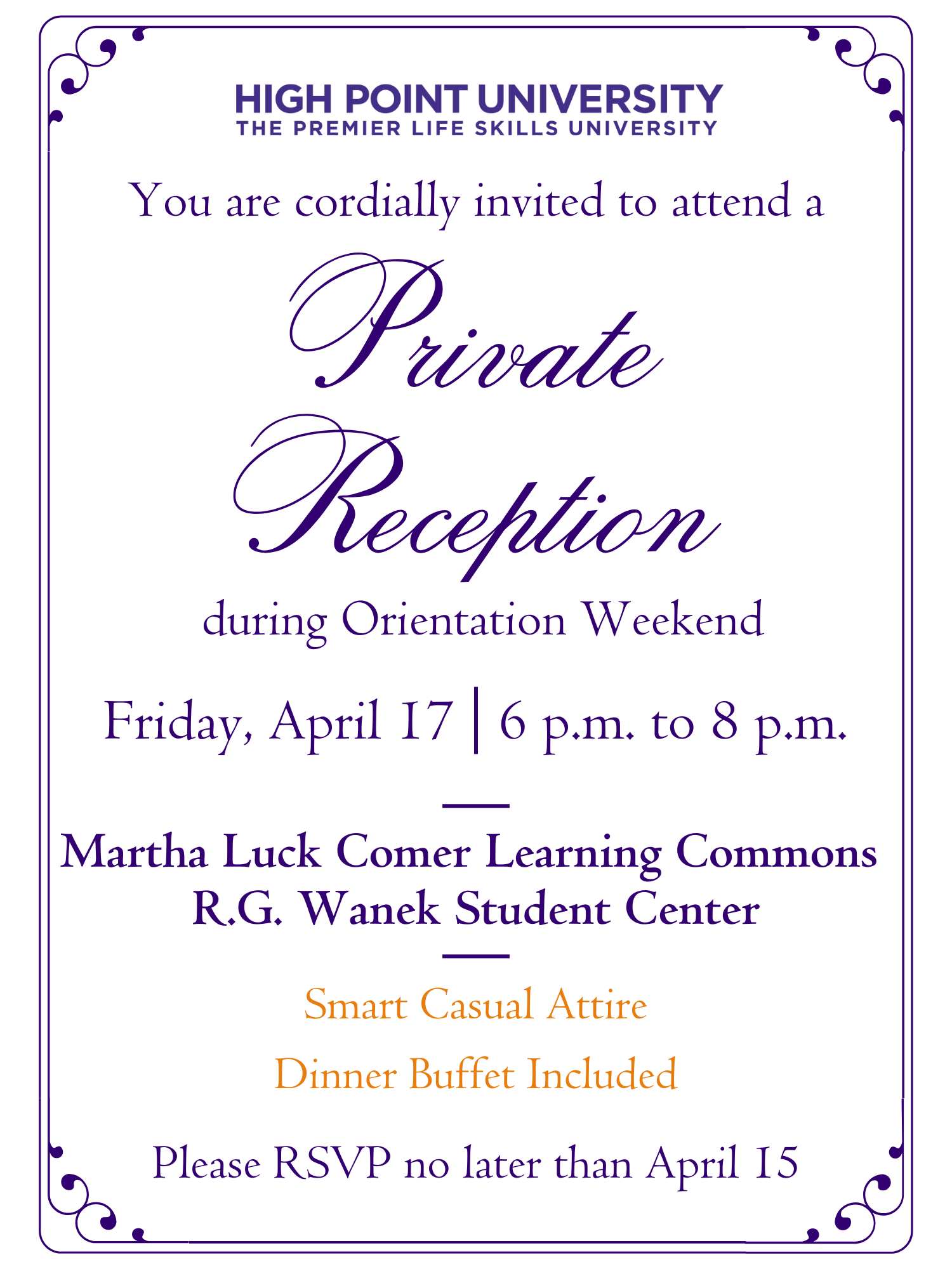 Private Orientation Reception for April 17: