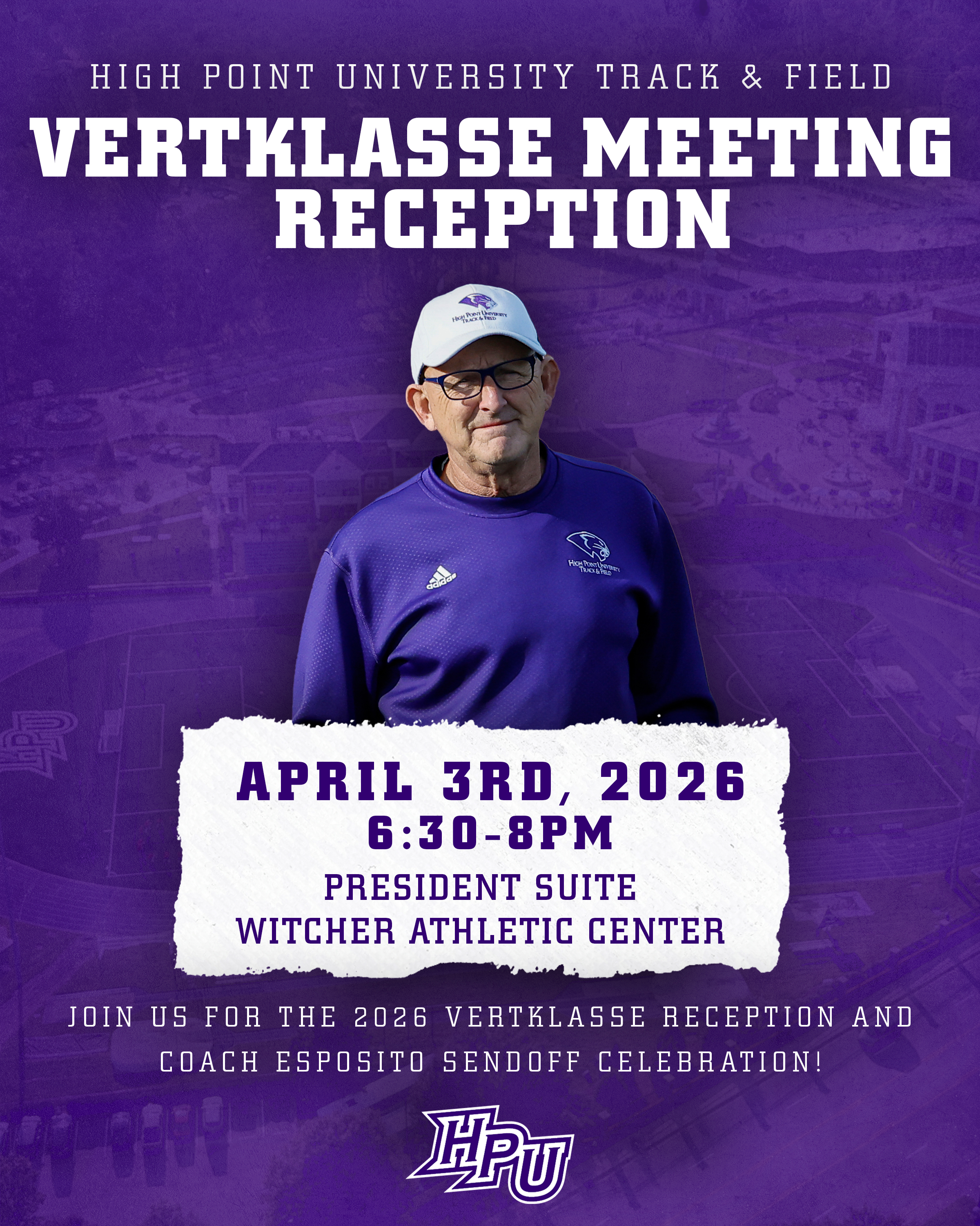 Join us on April 3, 2026, from 6:30–8:00 PM in the President’s Suite at the Witcher Athletic Center for the Vertklasse Reception and a special send-off honoring Coach Esposito. Celebrate the legacy, leadership, and impact as we gather for an evening of gratitude and community.